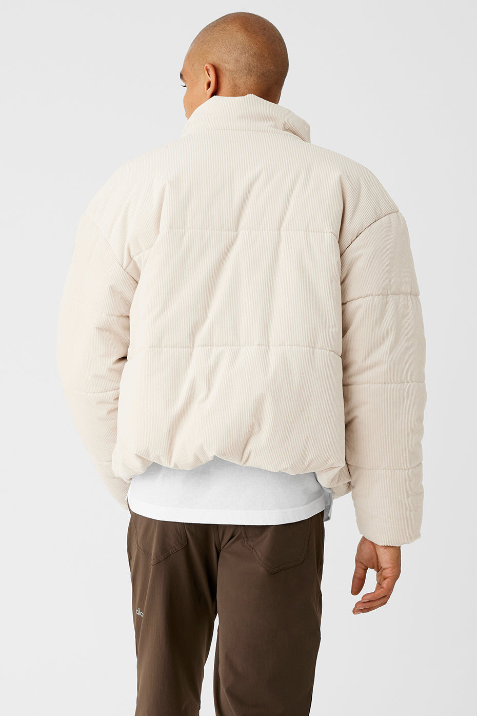 Stand out and stay warm in the Corduroy Stage Puffer. It has a cozy, insulated body, padded corduroy exterior and zippered side pockets—a must for making the to-and-from as toasty as possible. A heavyweight, slightly oversized, wind-and-weather-proof coat worthy of your year-round rotation.
