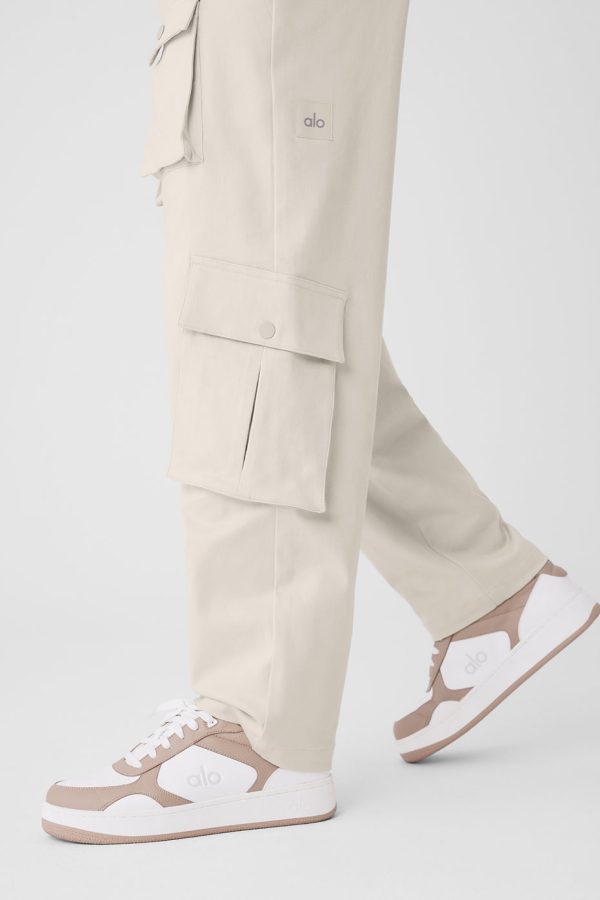 A fresh riff on Y2K style, these pants are made from soft, sturdy, stretch-infused cotton twill. They have four cargo pockets—peep how the lower pockets are slightly offset—with snap closures for stashing spare change or parking stubs. The roomy, straight-leg silhouette has an easy elastic waist with a drawstring. Top it all off with a hoodie and Alo sneakers.